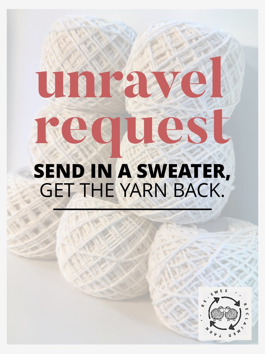 You send me your sweater, and for $20 I will clean, and unravel it into yarn cakes, then ship it back for you!