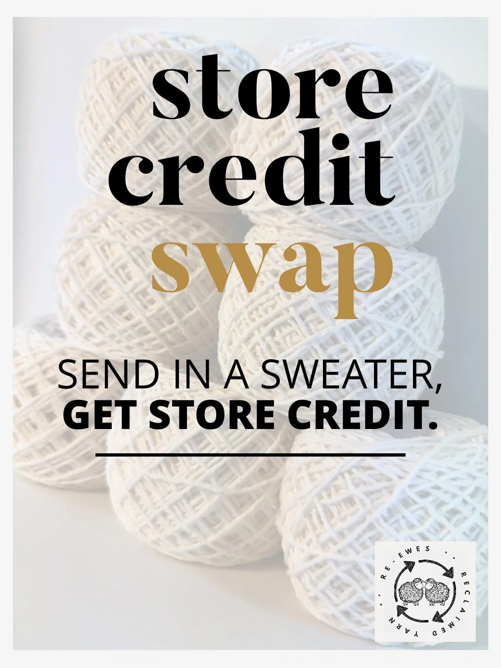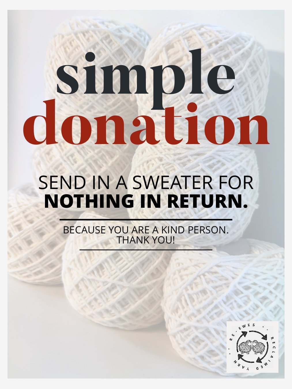 Simply a gift from you. You send in your sweater and don’t want it back or store credit. I will unravel and resell if it is worth the effort, and if not I will pass it on to a local shelter. Thank you for your support and thank you for your help in sustainable crafting!